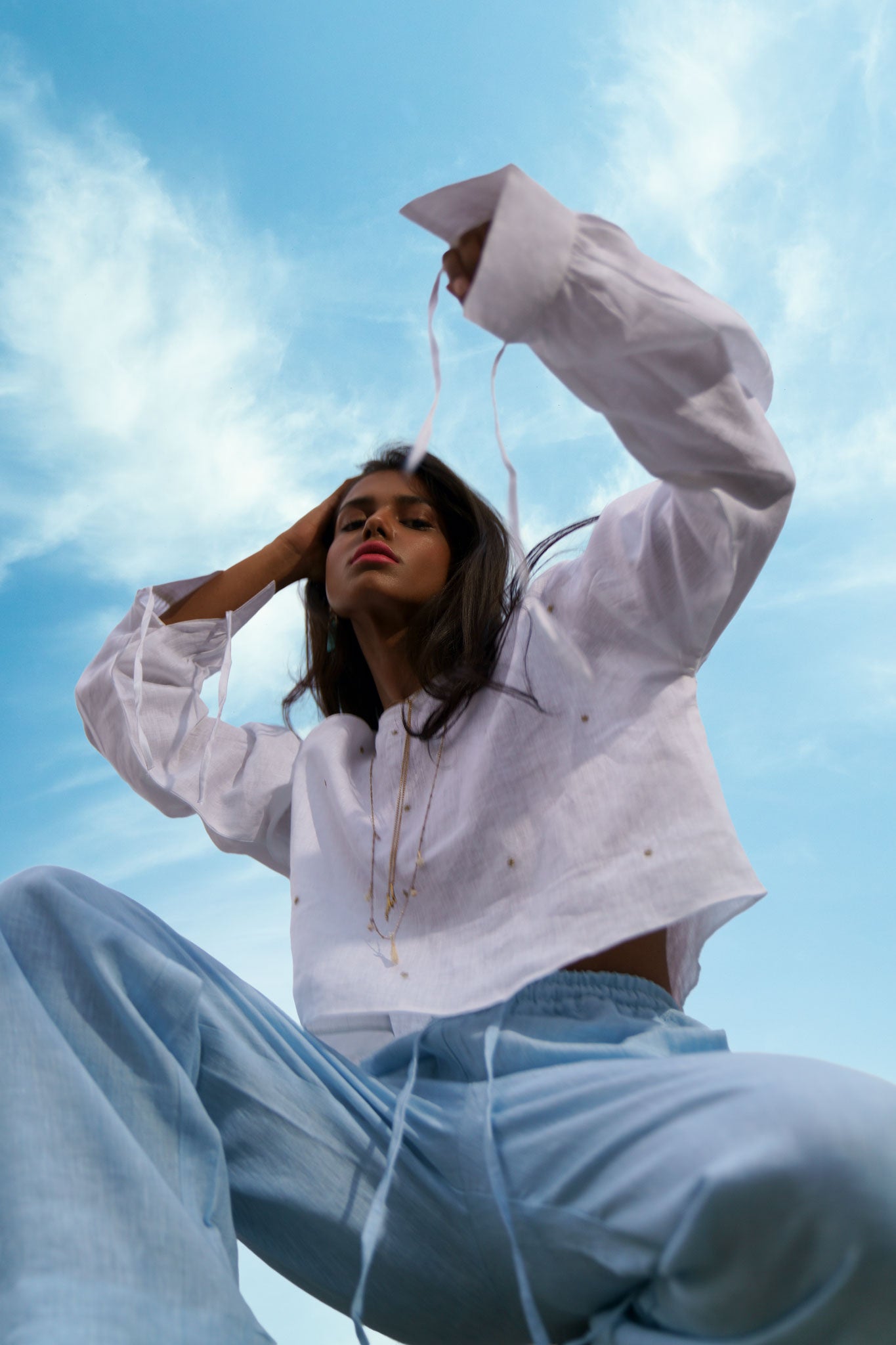 Enjoy the Indian summer in our thoughtfully designed Flow Top. The relaxed crop top is a perfect summer piece, natural and cool. It is made in the softest linen that you will love